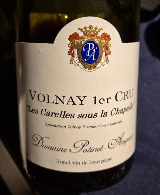 Classificação do grupo 1º Lugar Volnay 1er Cru Hospices de Beaune cuvee Blondeau 2015. 2º Lugar Volnay 1er Cru Les Santenots Du Millieu Domaine des Comtes Lafon 2009. 3º Lugar Volnay 1er Cru Les Santenots Hospices de Beaune Cuvee Gauvain 2015. 4º Lugar Volnay 1er Cru em Champans Domaine de Montille 2013. 5º Lugar Volnay 1er Cru Clos des Chenes Huber Verdereau 2019. 6º Lugar Volnay 1er Cru em Champans Domaine de Montille 2010, 7º Lugar Volnay 1er Cru Les Carelles Sous la Chapelle Domaine Potinet Ampeau 2016