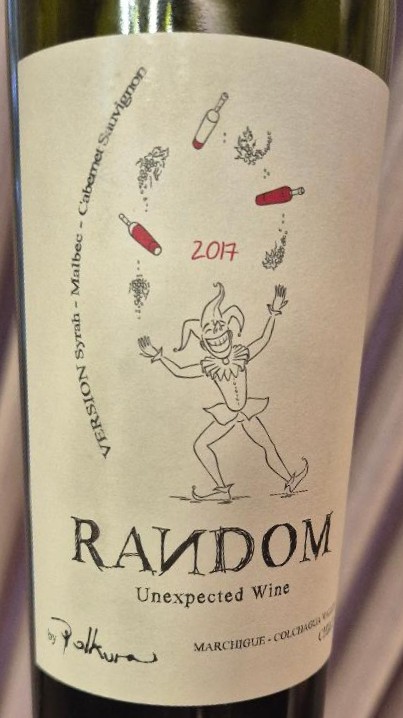 Polkura Random Unespected Wine 2017- Corte com Syrah, Malbec, Cabernet, Grenache, Petit Verdot e Tempranillo elaborado com uvas de Marchigüe com 14% de álcool, sem passagem por madeira. Vinho granada com forte presença de flores escuras, cereja, especiarias e chocolate. Boca com alta acidez, taninos ainda rascantes, encorpado, longo, final defumado. Mais um vinho de 2017 trazendo aromas de fumaça. R$ 196