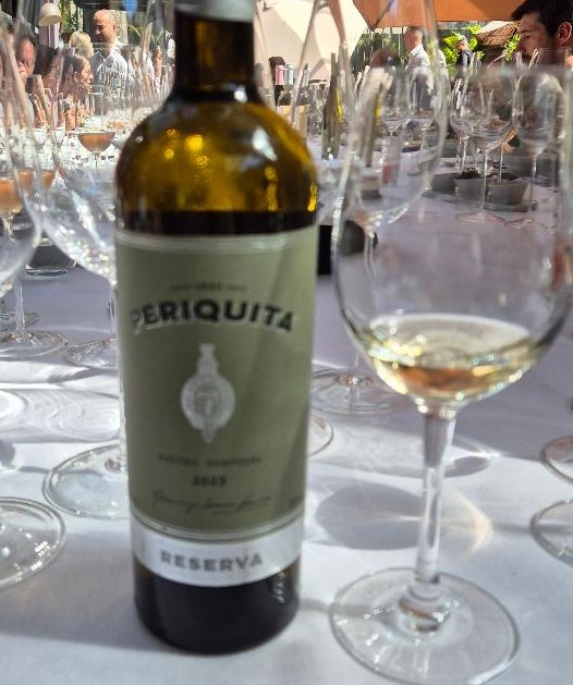 Periquita Reserva Branco 2023 – Corte 80% Viognier e 20 % Arinto com 12,6% de álcool e passagem de 6 meses em barricas de carvalho americano. – Palha brilhante. Nariz marcado por aromas de damasco, maça verde, forte presença de cítricos e leve tosta. Na boca acidez correta, corpo médio, persistência longa e retrogosto lácteo com presença de baunilha mais intensa que no nariz. Vinho fácil de beber e gostar. Preço R$ 125
