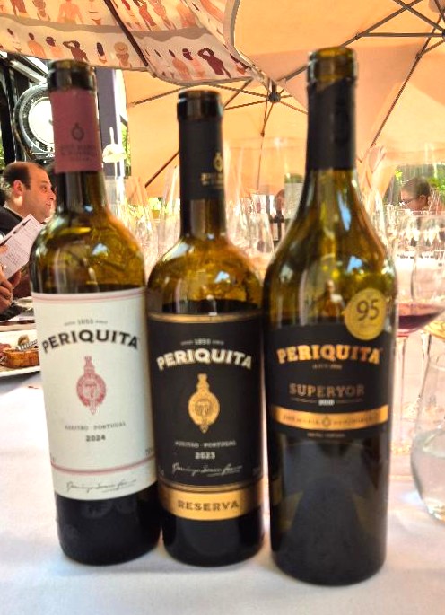 Periquita Reserva 2023 – Corte com 54% de Castelão,28% e Touriga Nacional e 18% de Touriga Francesa com 13% de álcool, e passagem de 8 meses em barricas francesas e americanas de primeiro e segundo uso. Rubi violáceo, média concentração, sem halo. No nariz frutas negras maduras, tabaco, café e violetas. Na boca, boa acidez, taninos resolvidos, corpo médio, retrogosto com framboesa, alcaçuz e tostado. Vinho gostoso pronto para o consumo, foi meu favorito para ser tomado agora. R$ 125
